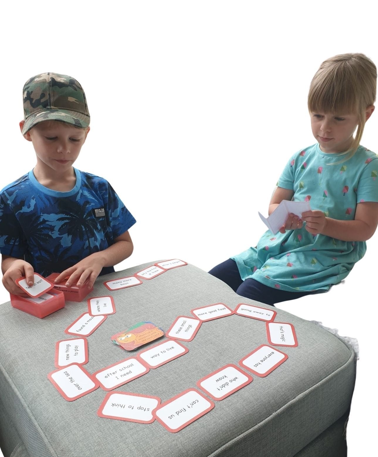 Phrases from previous sets can also be mixed in with later sets if more practice with specific words/phrases is needed. Game sets are colour-coded and numbered for easy sorting.
